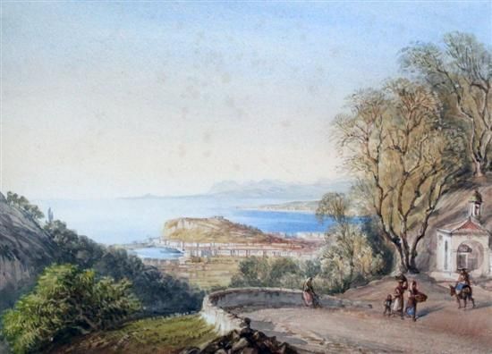 Castle and town of Nice from a hillside path