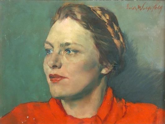 Portrait of a Girl in Red signed upper right 'Erich Wolfsfeld'