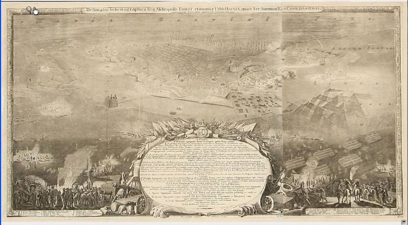 Scene from the Danish-Swedish War 1659 and "Friderichsberg Castle"