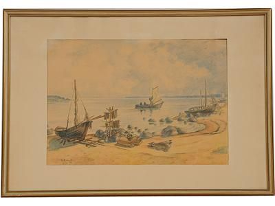 Sydländsk kustbild with seglare.