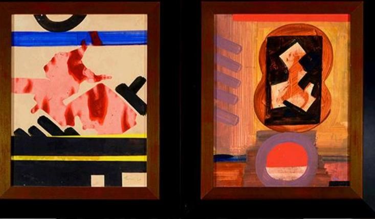Abstract with Rectangles and "Abstract with Pink/Red"