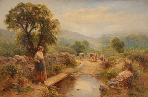 | Farm Girl walking on a Plank Bridge, a Herd Boy and Cattle beyond | |