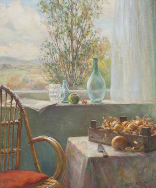 Still Life with Canework Chair and Crate of Onions