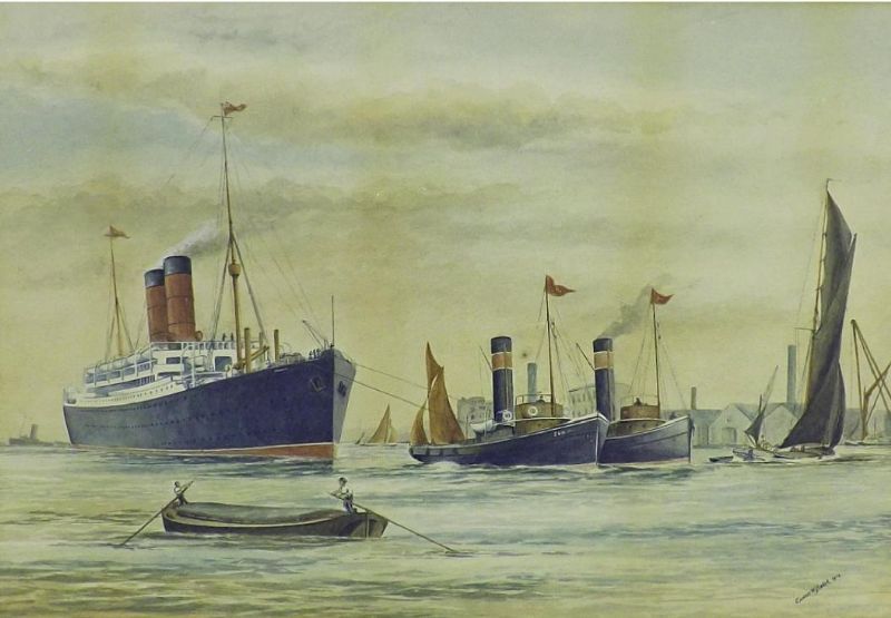study of various boats and ships not far from port