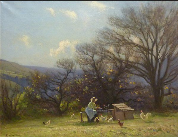 Summertime Yorkshire Dales - Lady Feeding Hens