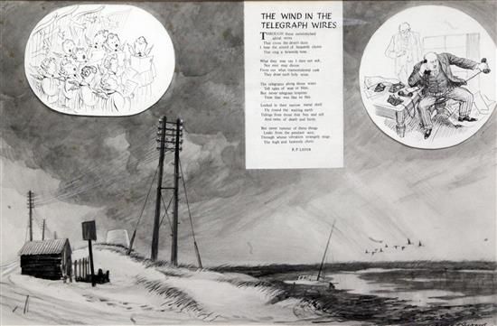 | Original illustration for Punch magazine of 'The Wind in the Telegraph Wires' by R. P. Lister | |