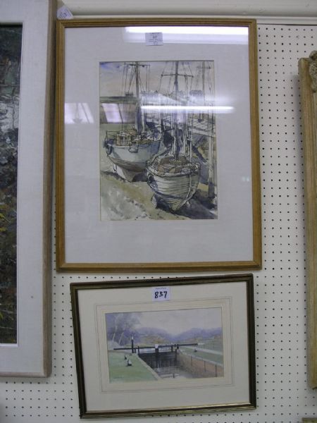 Yachts at low tide initialled