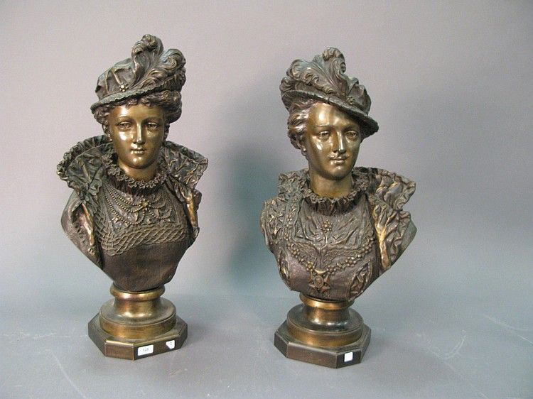PAIR OF BRONZE BUSTS, ONE OF MAN AND ONE OF WOMAN