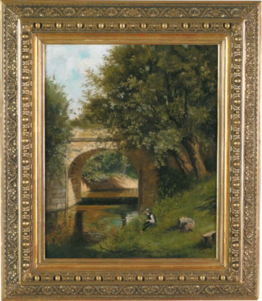 Bachlandschaft mit Fischer, bezeichnet E Kirchsberg