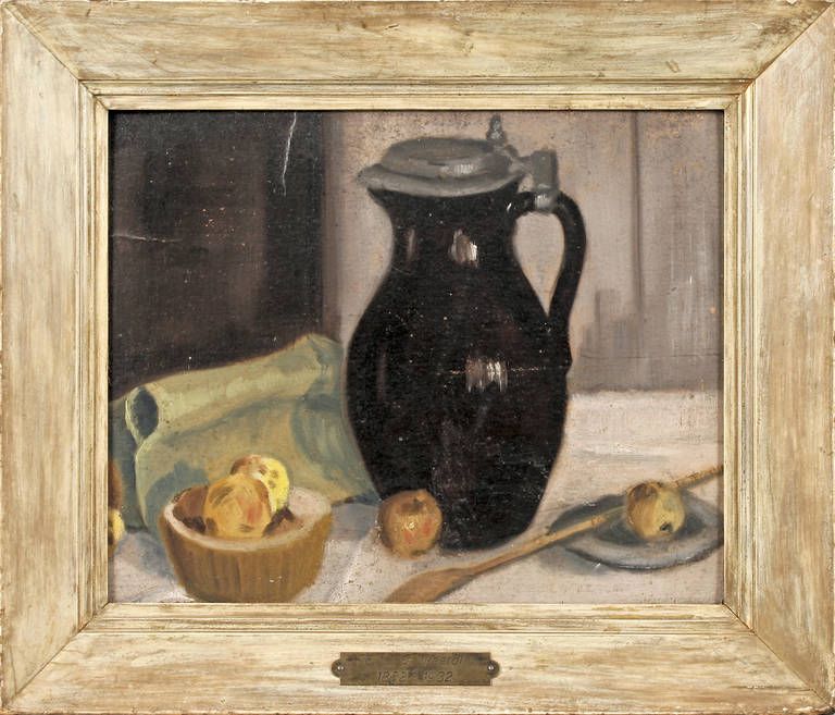 Küchenstillleben mit Bunzlaukrug u. Zitronenpresse