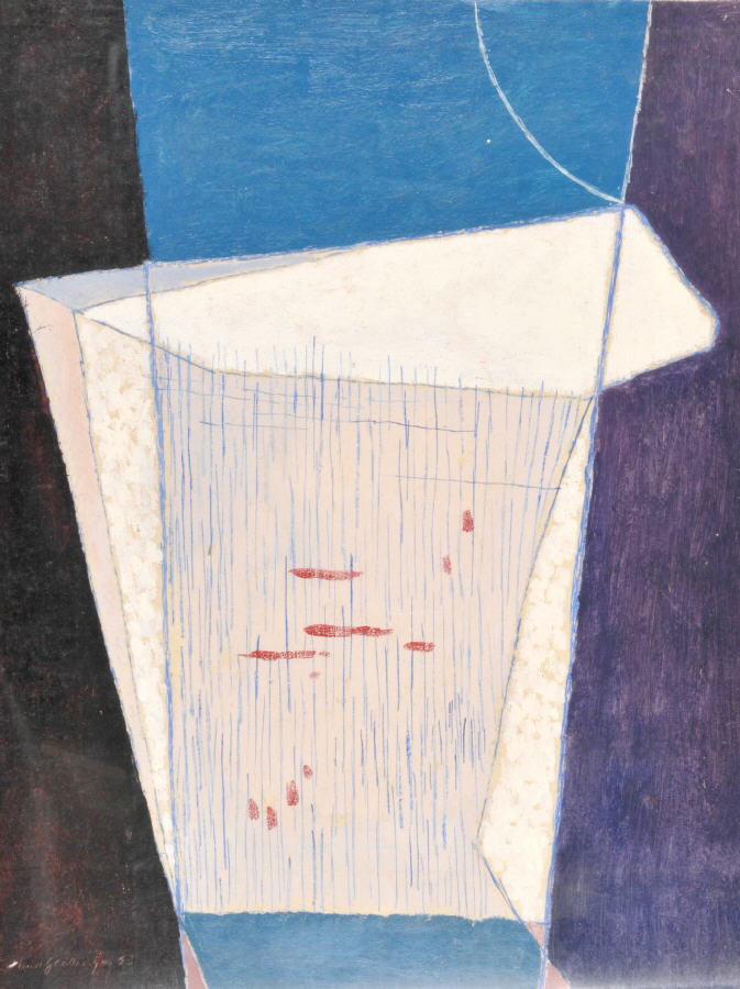 Abstrakte Komposition mit Blau, Violett und Schwarz