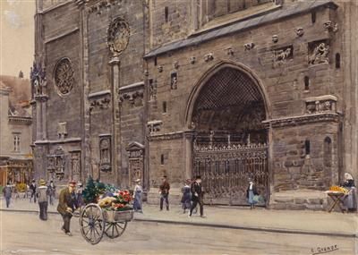 | Main Entrance to St Stephan’s Cathedral, in front a Commissionaire with Flower Cart, | |