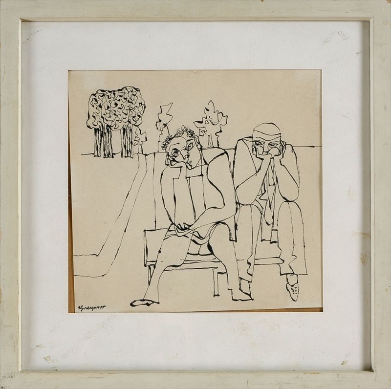 TWO FIGURES ON PARK BENCH