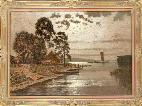 Landschaftsmaler und Restaurator, große Mondscheinlandschaft am Seeufer