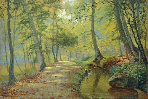 Pejzaż leśny ze stawem