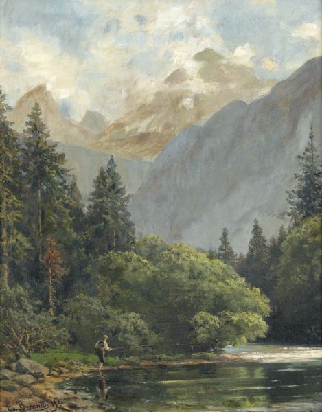 Flusslandschaft bei Berchtesgaden mit Angler.