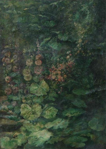 HOLLYHOCKS IN SUMMER
