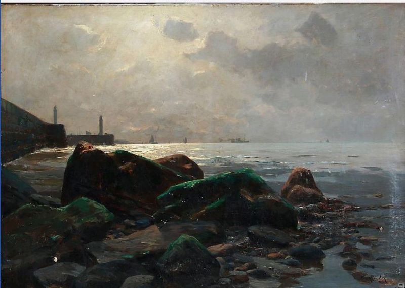 Coastal scene with a view to a harbour