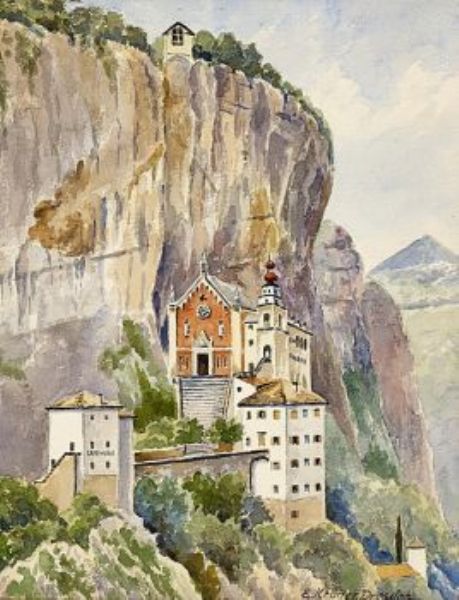 Blick auf die Kirche Madonna della Corona in Südtirol
