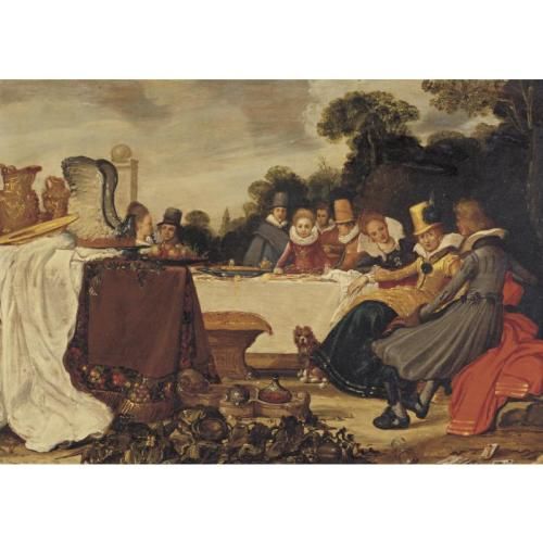 ELEGANT FIGURES AT AN OUTDOOR BANQUET