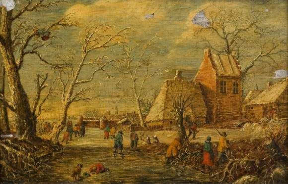 Winterlandschaft mit Figuren auf dem Eis