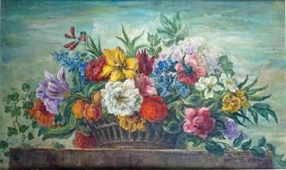 CORBEILLE DE FLEURS SUR UN ENTABLEMENT