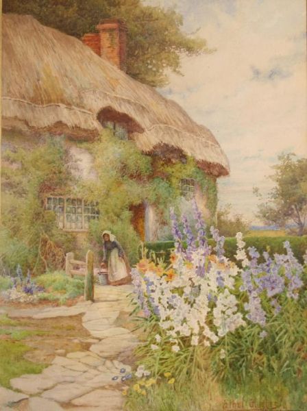 CAMPANULA IN A COTTAGE GARDEN, GLOUCESTERSHIRE