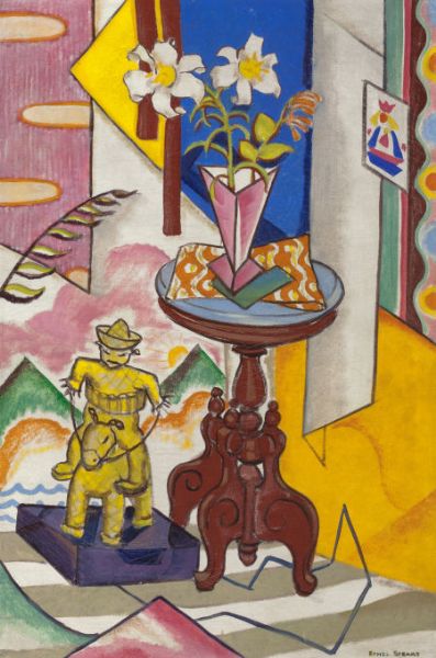 Still Life with Pink Vase and Figurine of Rider on Horseback