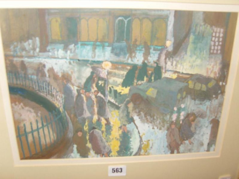 Study of a busy London street scene at dusk with figures