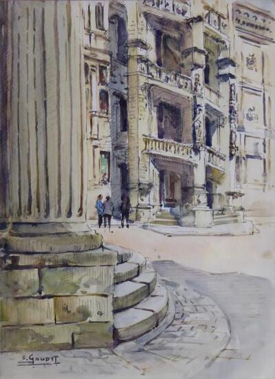 | Vue animée de l'escalier François Ier du château de Blois | |