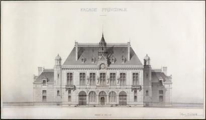 Hôtel de ville, façade principale Plume, lavis gris.