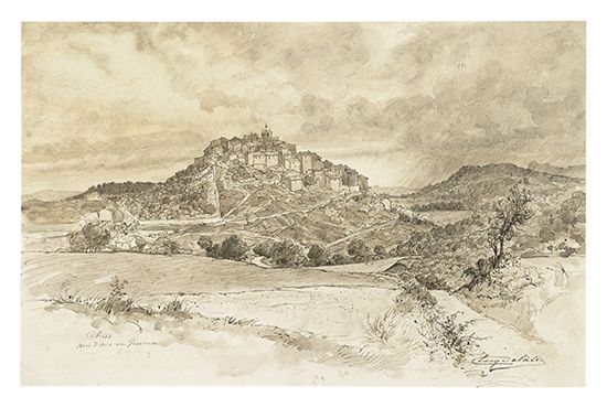 Pen and ink and wash on wove paper