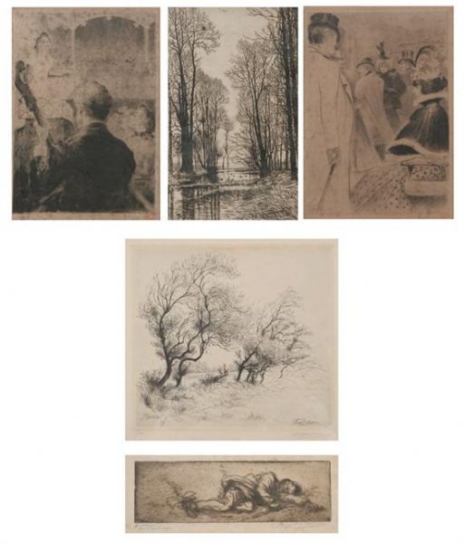 | AT THE THEATRE; THE DEPARTURE; SLEEPING PEASANT; COUP DE VENT, CALVADOS; and DUCKS IN A WOODLAND STREAM: FIVE WORKS | |
