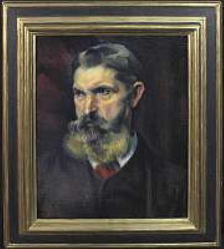 A Portrait of a Bearded Man in a Dark Coat and Red Tie