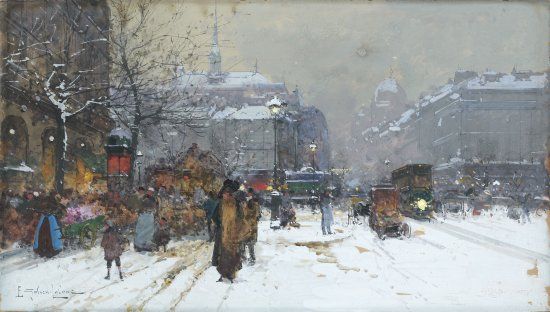Le théâtre Sarah Bernhardt, place du Châtelet sous la neige