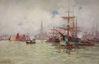 Voiliers et remorqueurs au port d'Anvers