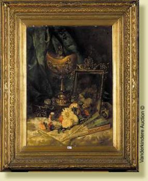Nature morte aux fleurs, à l'éventail, au miroir et à la coupe en vermeil