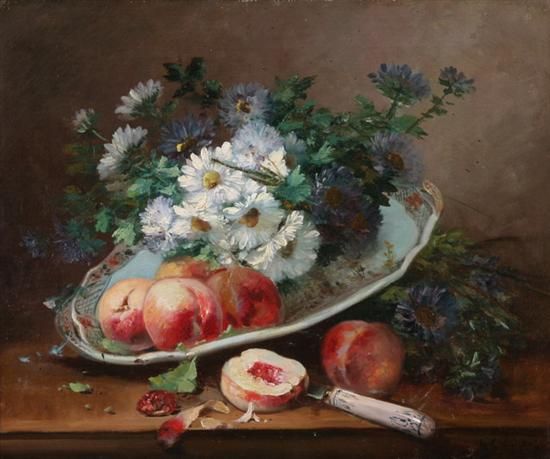 STILL LIFE WITH FLOWERS AND PEACHES