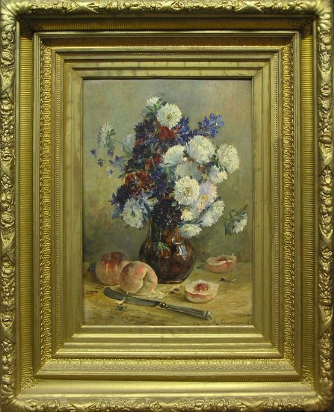 Still Life with Peaches and Floral Arrangement