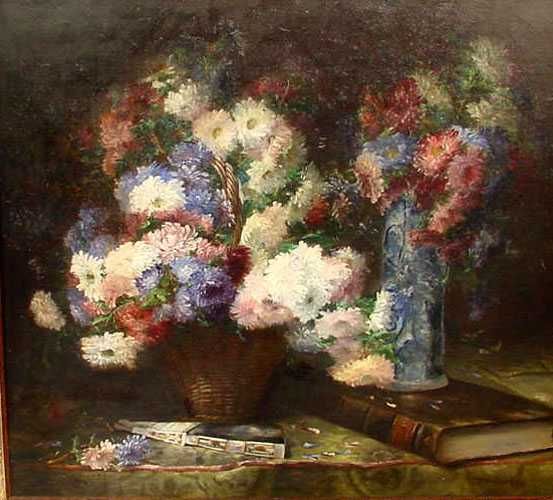 Stilleben mit Astern, Buch und Fächer