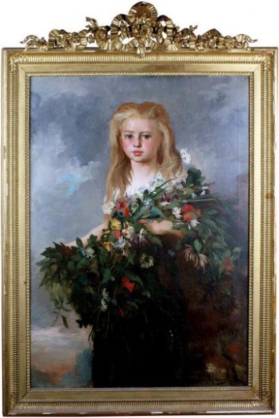 PORTRAIT DE JEUNE FILLE AU BOUQUET DE FLEURS DES CHAMPS