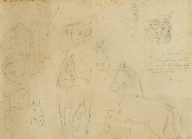 | STUDIES OF HORSES, ARCHITECTURAL ELEMENTS AND RAM HEADS | |