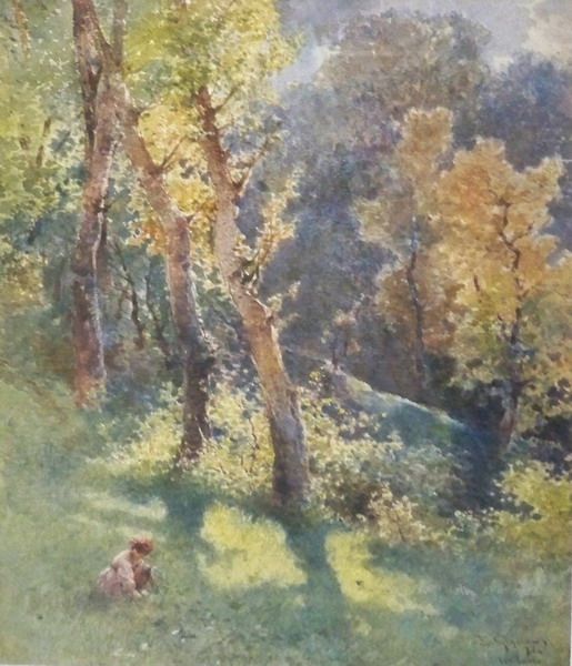 | Woman Gathering Flowers in a Wooded Landscape | |