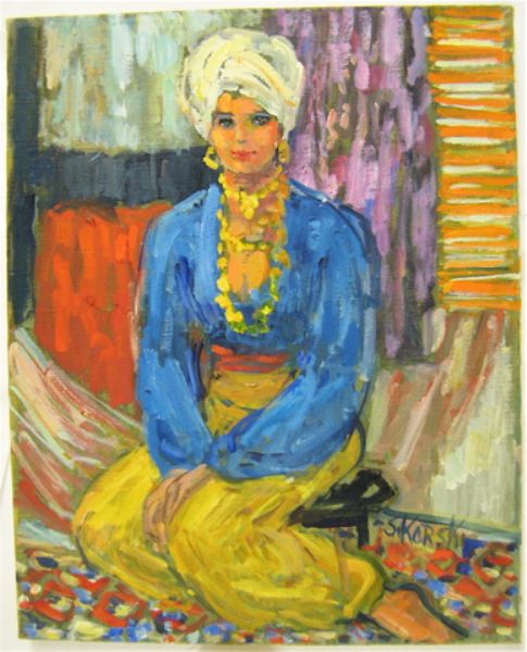 | study of young barefoot woman seated, in turban and wearing an elaborate necklace | |