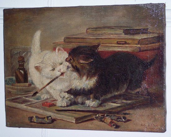 Cats playing with the Artist's Materials
