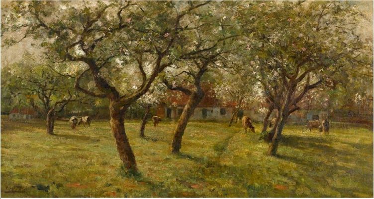 CATTLE GRAZING BY THE CHERRY BLOSSOM