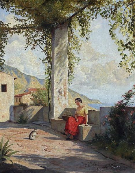 View form Italy with a young woman and a cat.