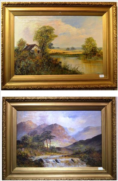 | An extensive summer landscape at harvest time; Highland stream before mountains | |