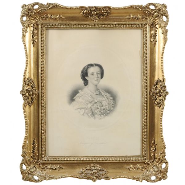 Sophie Hertiginna af Östergöthland. Porträtt i samtida förgylld ram. Smärre bortfall, blad ej examinerat ur ram