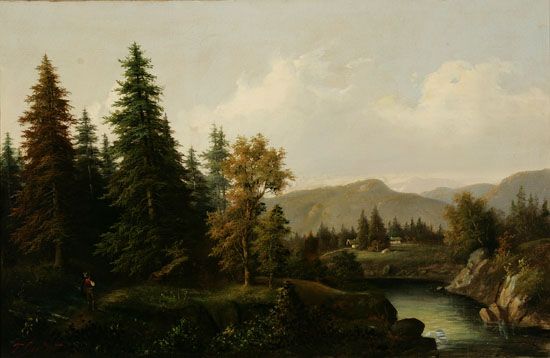 Hiker in a Mountain River Landscape